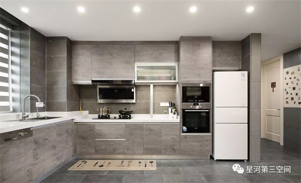 角落的躺椅在闲暇之余,煮一壶清茶,闻一支香,看一下午的书,实在惬意;女主人在中式厨房做几个清粥小菜,夫妻俩日子过得实在悠哉;西式厨房做些西式糕点配杯美式咖啡,简单美味的早餐那是极好的。