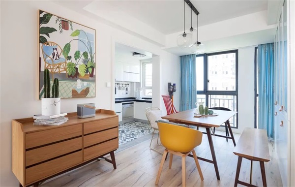 在轻盈欢快的氛围中,把春天的气息留在屋内,简洁的线条与色块,是北欧风格给人的深刻印象。