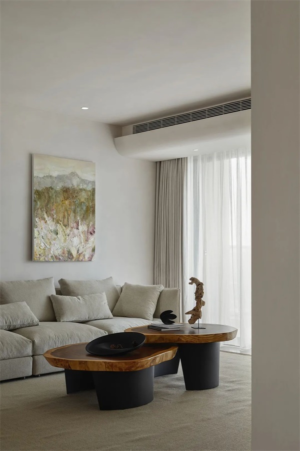 在阳光粤海,设计师郑鸿以质朴温暖的大地色系铺陈生机活力的空间意蕴。